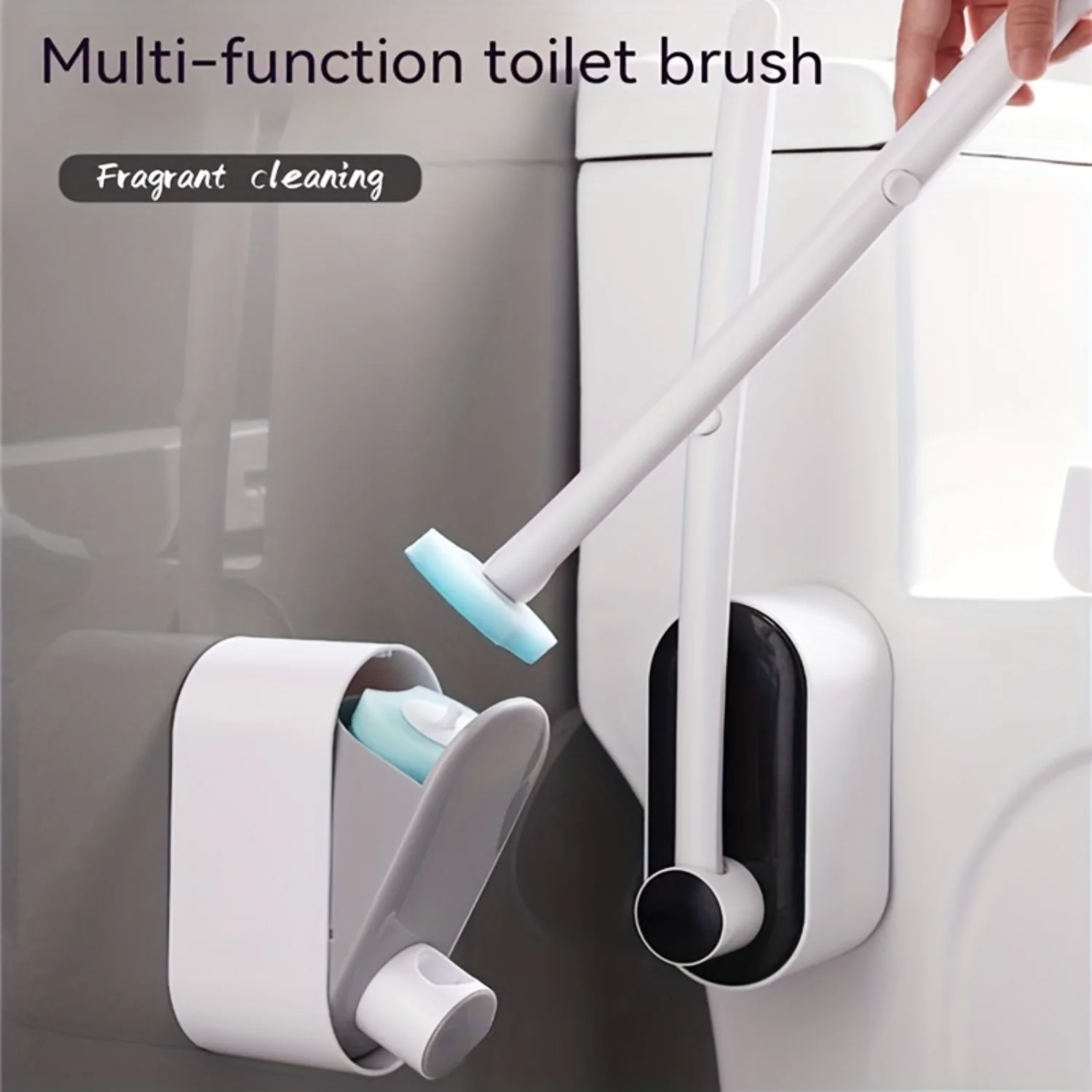 1. Wall Mounted Toilet Brush With Holder: This bathroom cleaning tool features a long handle and disposable fragrance cleaning brush head, making it a convenient and hygienic option for keeping your toilet clean. The punch-free design allows for easy installation on the wall, saving valuable floor space. Included components: multiple components. Special features: long handle, plastic handle material. Item ID: TC13859